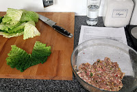 Then came the tiny little hiccup. I could not find vine leaves in any shop, anywhere. Not the general supermarkets, and not the more elite shops that have the posh stuff. Even they only had stuffed vine leaves tinned or fresh in the antipasti section. I have to admit that rather deflated me. I had been looking forward to my foray into the world of the culinary unknown. However, I soon pulled myself towards myself and picked up the dark green plan 'b' cabbage and headed for the checkout.